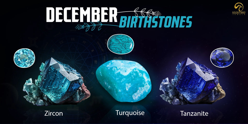 Turquoise symbolizes protection, tanzanite represents transformation, and zircon signifies wisdom, making them meaningful choices for December birthdays.