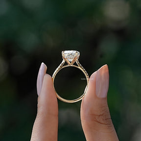 Cushion Cut Moissanite Hidden Halo Ring