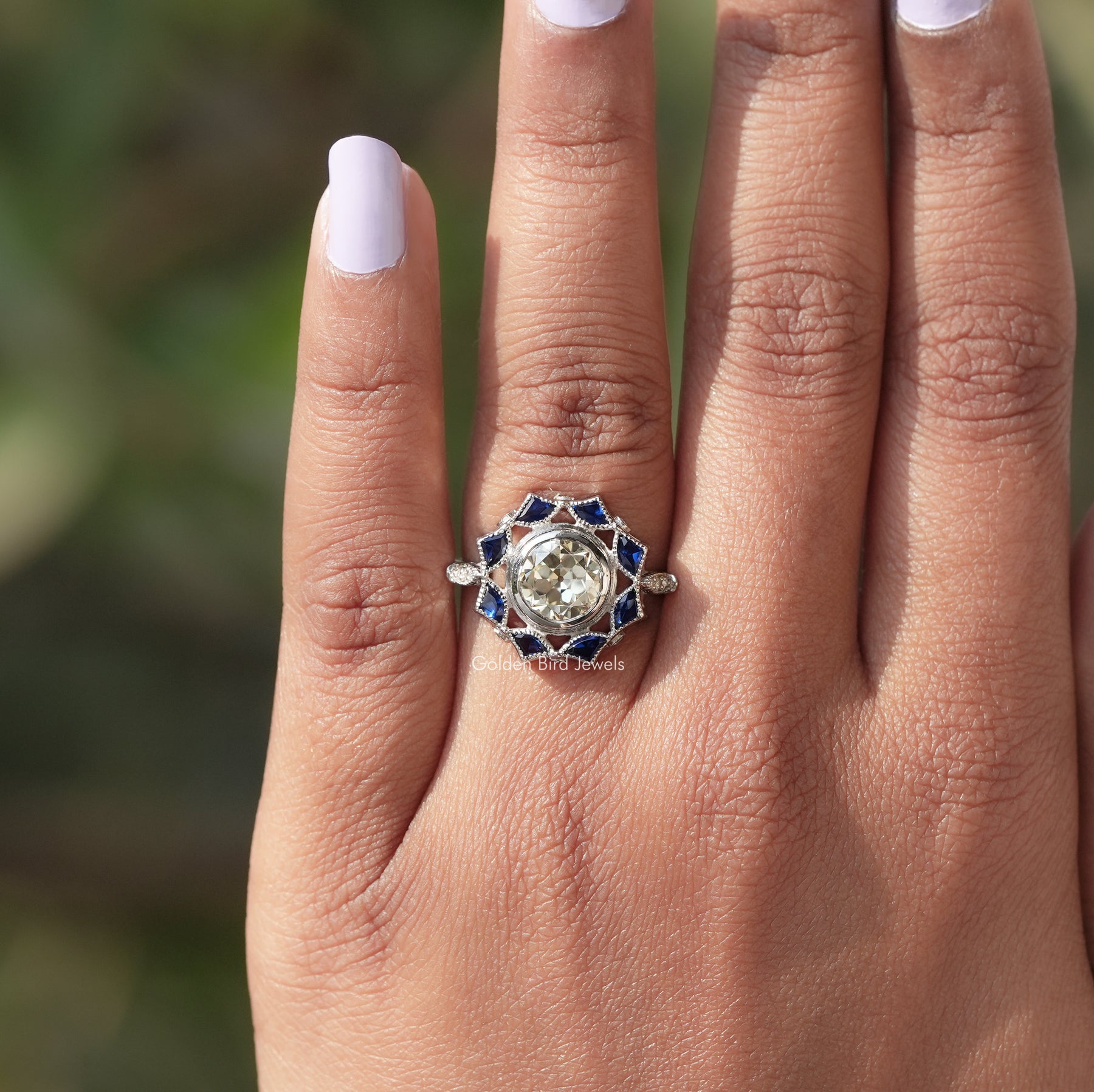 Alter europäischer Rundschliff Lünettensatz Moissanite Ring