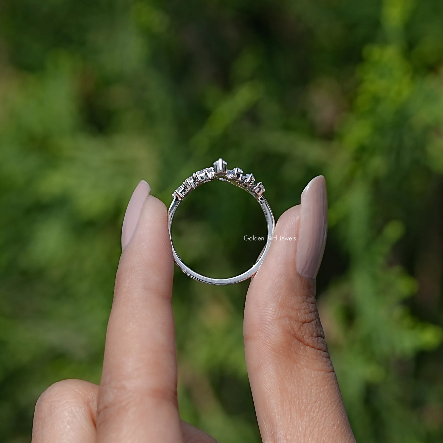 Moissanit-Ehering mit Marquise-Schliff und V-Form, gebogen